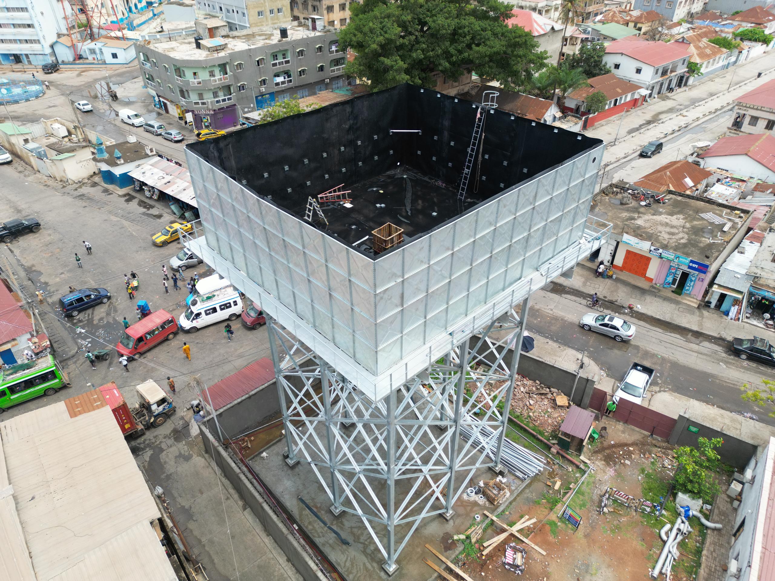 1. Construction de 2 réservoirs surélevés en acier de 750 m³ à Banjul ;